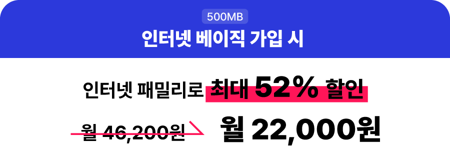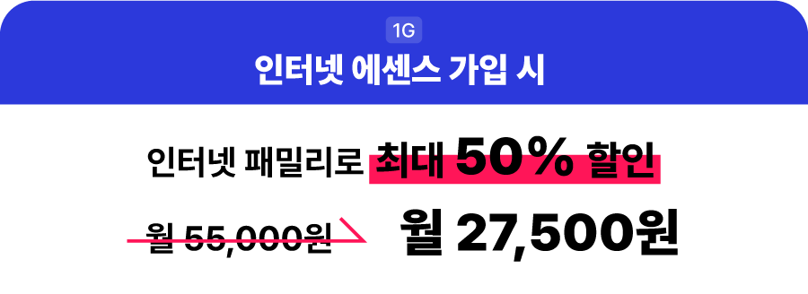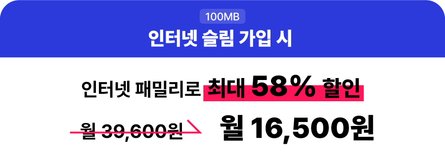 * Ãß°¡ °áÇÕ ÇÒÀÎÀ̶õ? ÀÎÅͳÝ+tv ¶Ç´Â ÀÎÅͳÝ+¸ð¹ÙÀÏ·Î °áÇÕ ½Ã, ¾àÁ¤¿¡ µû¶ó ÀÎÅͳÝÀÌ Â÷µî ÇÒÀε˴ϴÙ. (¿Ã·¹ ÀÎÅͳÝÀÇ °æ¿ì 2017.9.1 ÀÌÀü ¿Ã·¹ ÀÎÅÍ³Ý °¡ÀÔ°í°´¿¡ ÇÑÇÔ, ÀÎÅÍ³Ý ½½¸²ÀÇ °æ¿ì Ãß°¡ °áÇÕ ÇÒÀÎ ¹ÌÁ¦°ø)(´Ü, ÇÒÀÎ Á¦°ø ½ÃÁ¡ºÎÅÍ º°µµ ¾àÁ¤±â°£ÀÌ Àû¿ëµË´Ï´Ù.) |