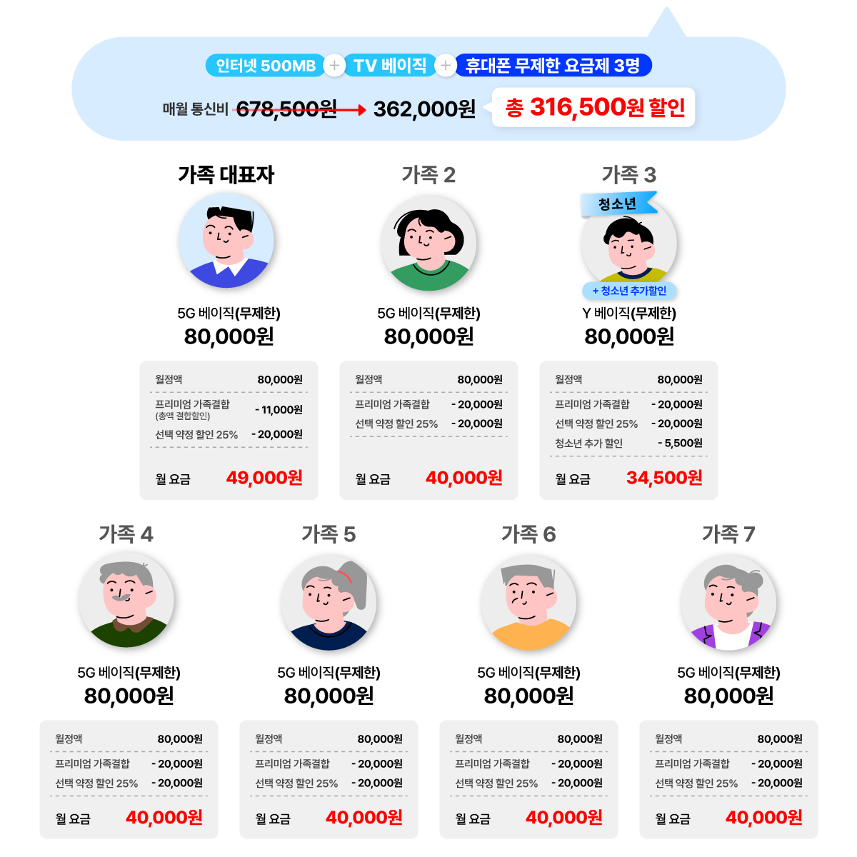 ¡Ø 5G ÇÁ¸®¹Ì¾ö °¡Á·°áÇÕ Ã»¼Ò³â ÇÒÀÎ : ºÎ¸ð´Ô(¹ýÁ¤´ë¸®ÀÎ)°ú ¸¸ 18¼¼ ÀÌÇÏ Ã»¼Ò³â Àڳడ 8¸¸¿ø ÀÌ»ó 5G ¿ä±ÝÁ¦¸¦ »ç¿ëÇÏ¿© ÇÁ¸®¹Ì¾ö °¡Á·°áÇÕ¿¡ °¡ÀÔ ¹× ÇÒÀÎ ½Åû ½Ã û¼Ò³â Àڳ࿡°Ô ¿ù 5,500¿ø Ãß°¡ ÇÒÀÎÀÌ Á¦°øµË´Ï´Ù.