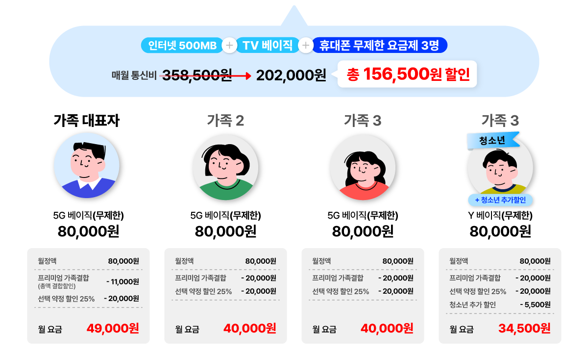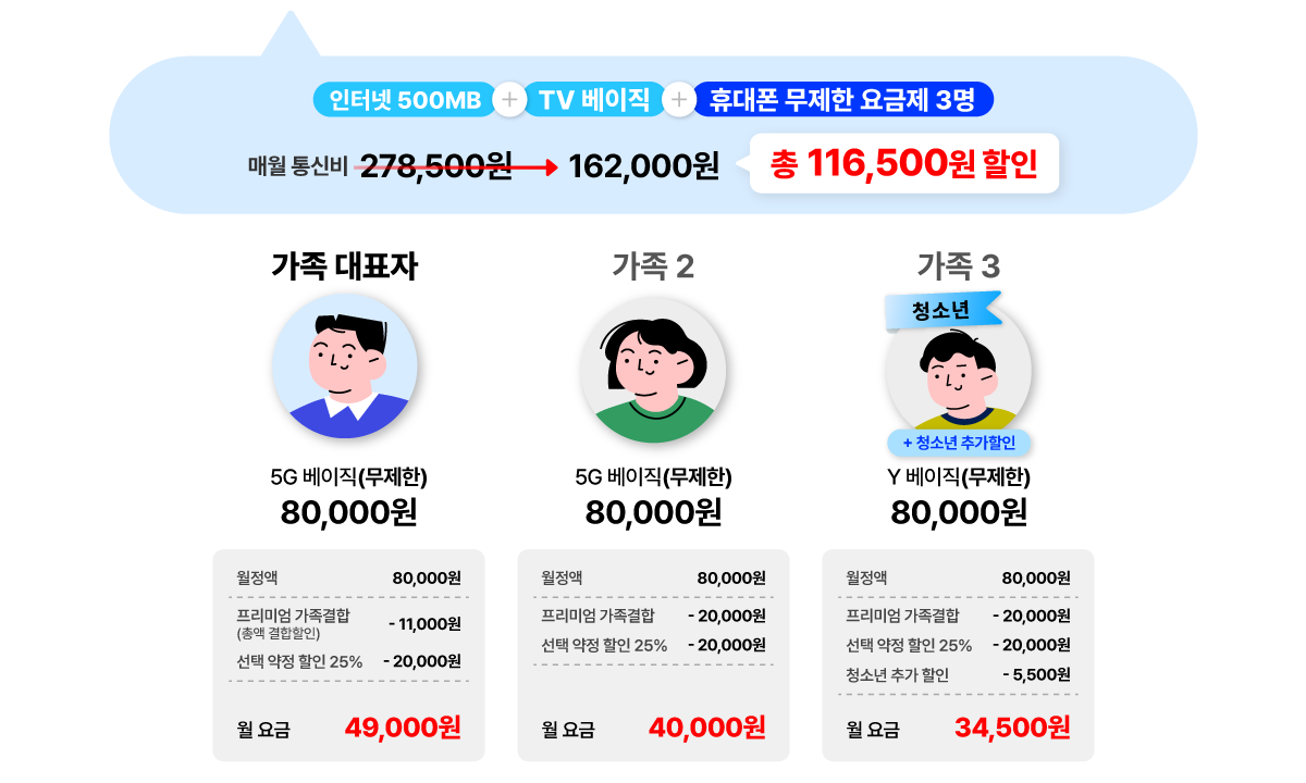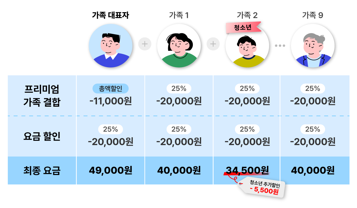 ¡Ø 5G ÇÁ¸®¹Ì¾ö °¡Á·°áÇÕ Ã»¼Ò³â ÇÒÀÎ : ºÎ¸ð´Ô(¹ýÁ¤´ë¸®ÀÎ)°ú ¸¸ 18¼¼ ÀÌÇÏ Ã»¼Ò³â Àڳడ 8¸¸¿ø ÀÌ»ó 5G ¿ä±ÝÁ¦¸¦ »ç¿ëÇÏ¿© ÇÁ¸®¹Ì¾ö °¡Á·°áÇÕ¿¡ °¡ÀÔ ¹× ÇÒÀÎ ½Åû ½Ã û¼Ò³â Àڳ࿡°Ô ¿ù 5,500¿ø Ãß°¡ ÇÒÀÎÀÌ Á¦°øµË´Ï´Ù.